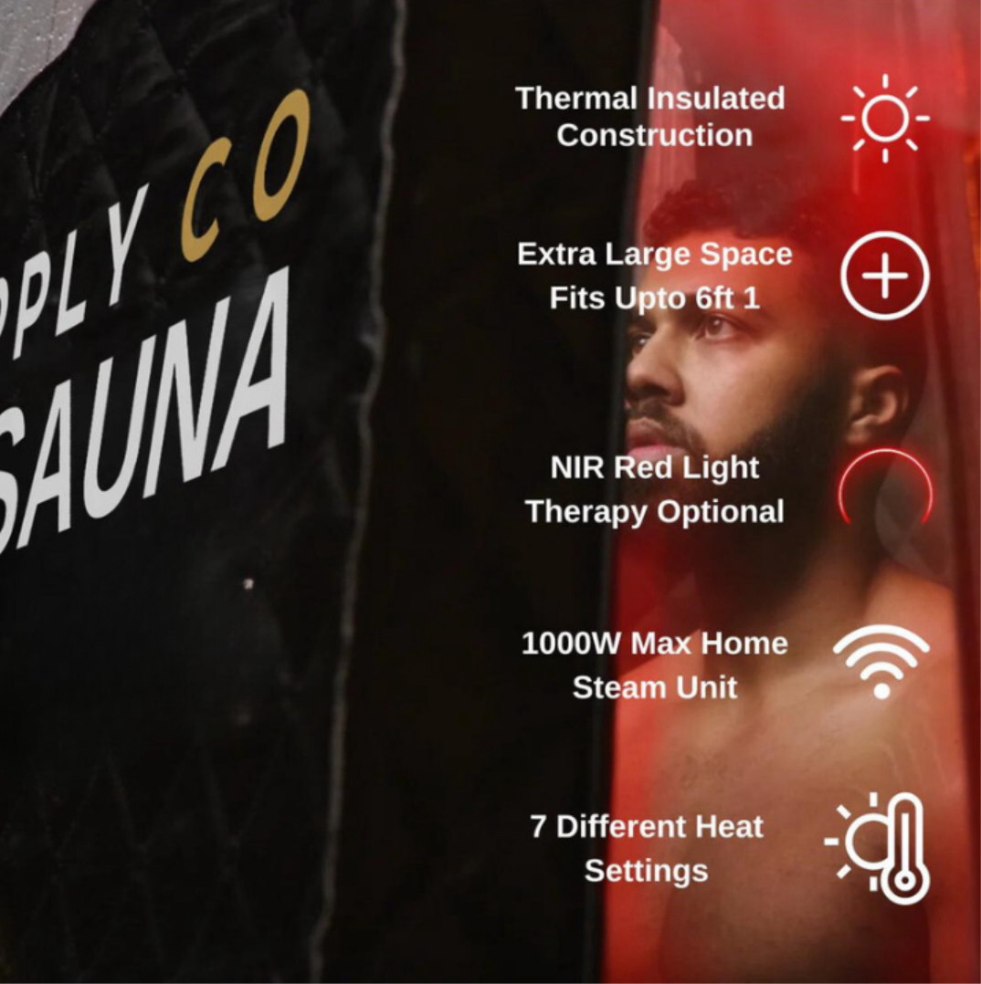 The GymSupplyCo Home Sauna utilizes advanced heat-transfer technology combined with our next-generation steam device to provide a safe and effective solution for experiencing the full benefits of saunas.